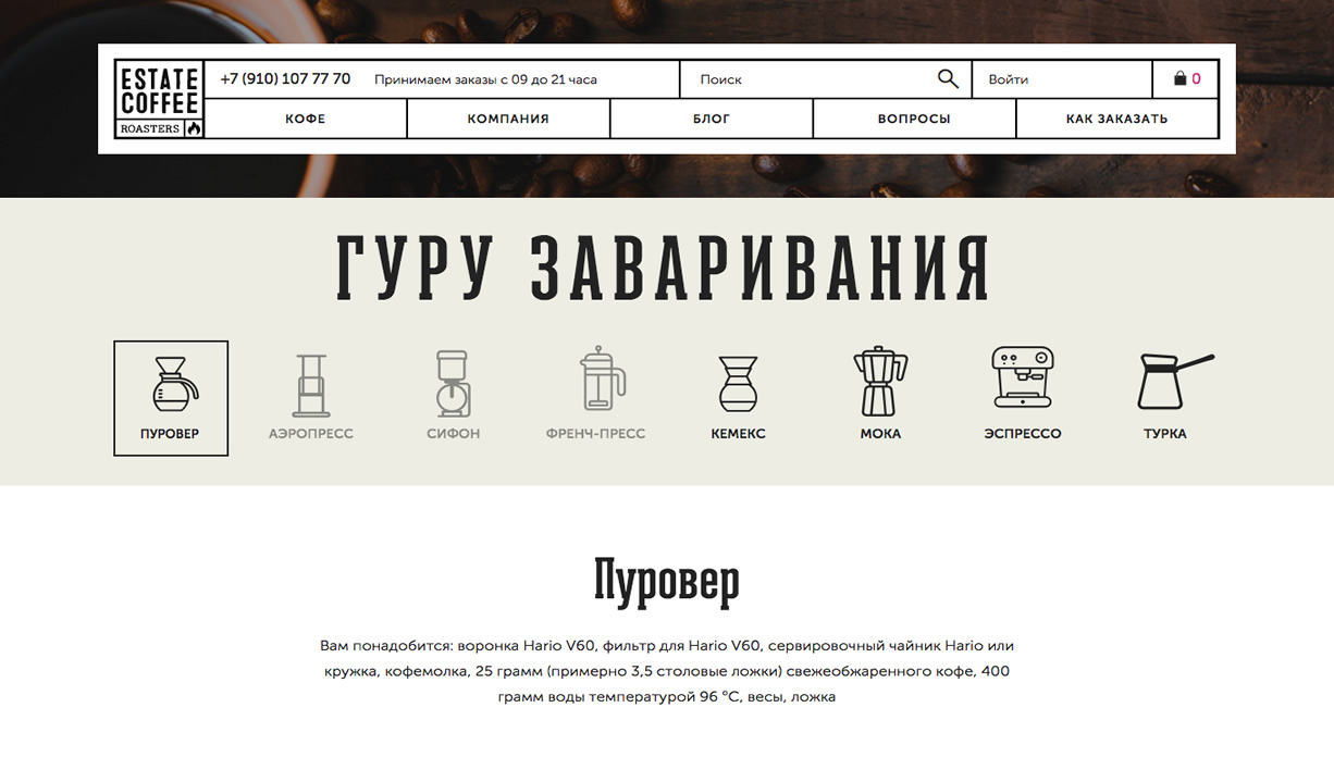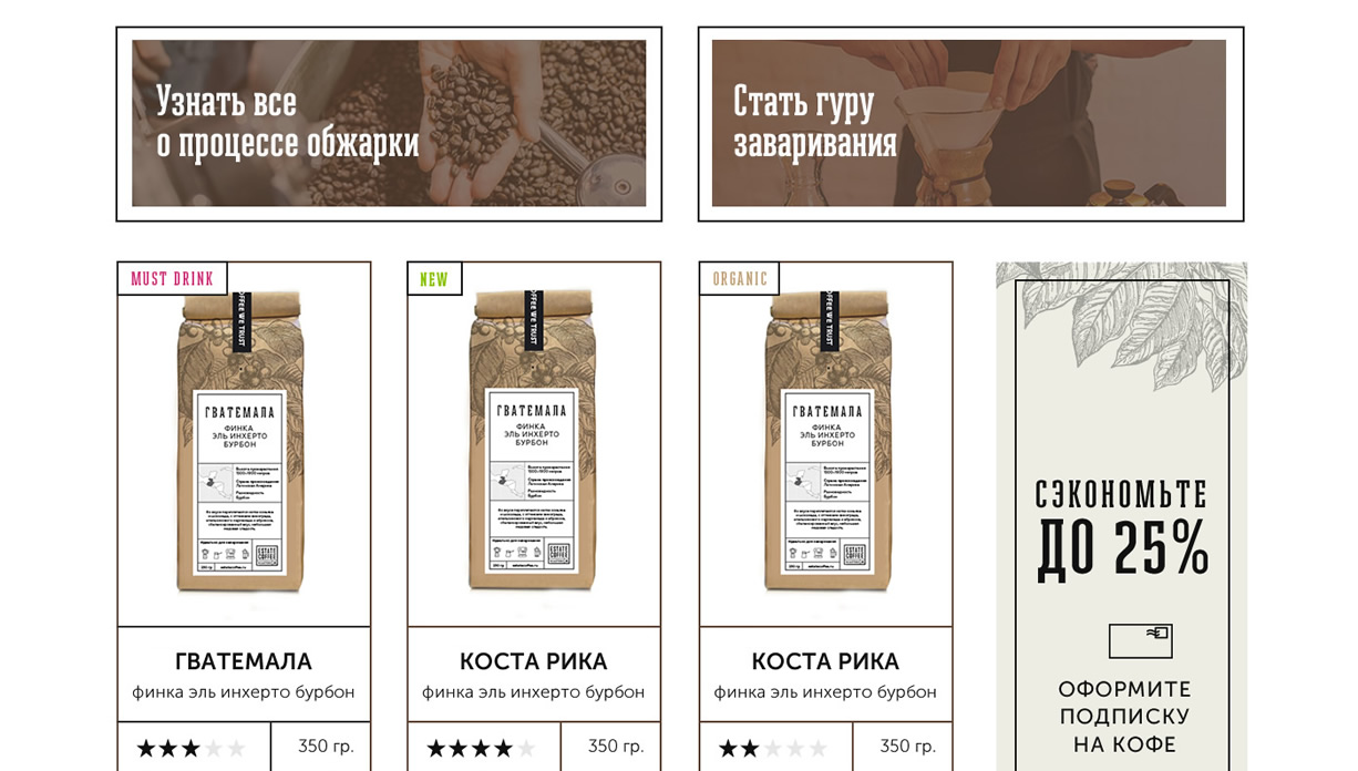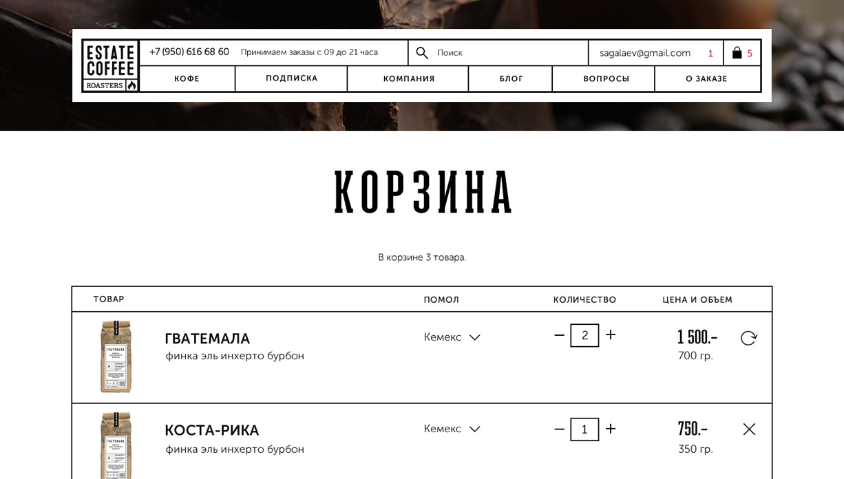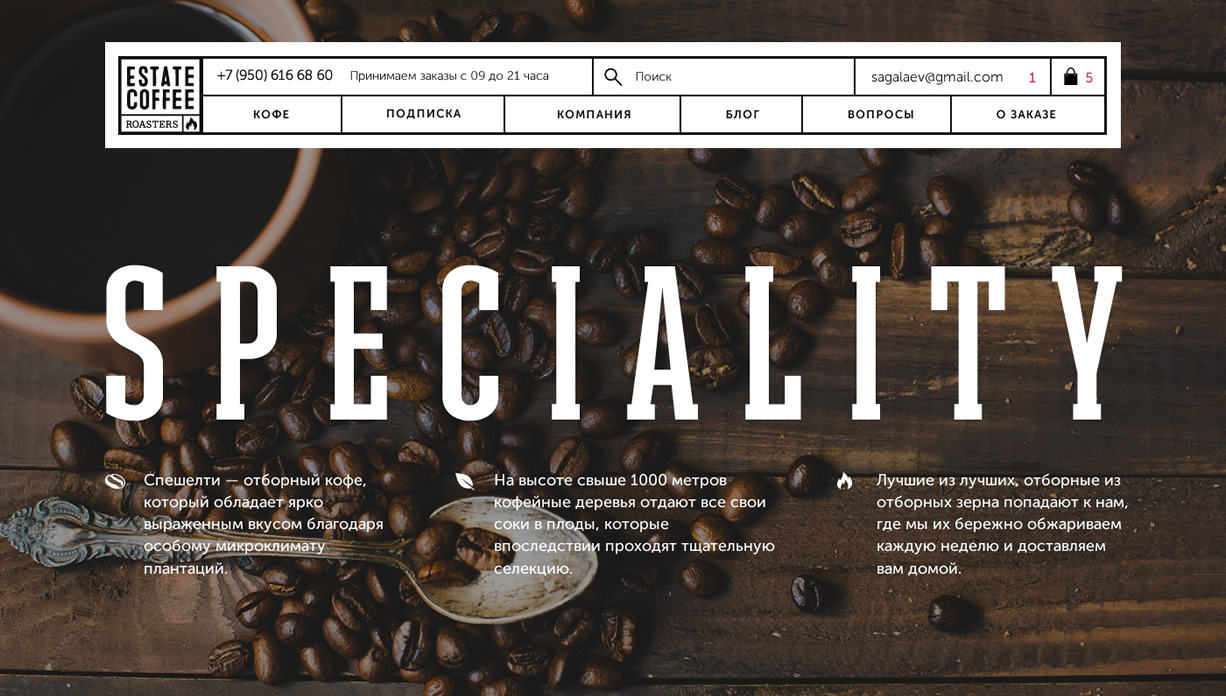 Разработка айдентики, упаковки и интернет-магазина Estate Coffee Roasters. Молодого бренда, созданного группой амбициозных фанатов кофе. Проект появился на свет, чтобы единомышленники и такие же страстные любители этого напитка могли получать лучший из доступных на рынке кофе.
